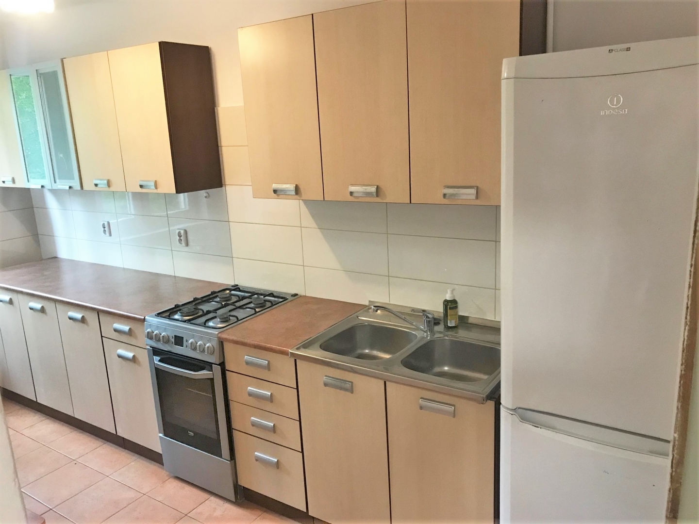 Łazienka po remoncie. Niezbędne sprzęty w kuchni: lodówka, piekarnik, płyta, zlewozmywak dwukomorowy.