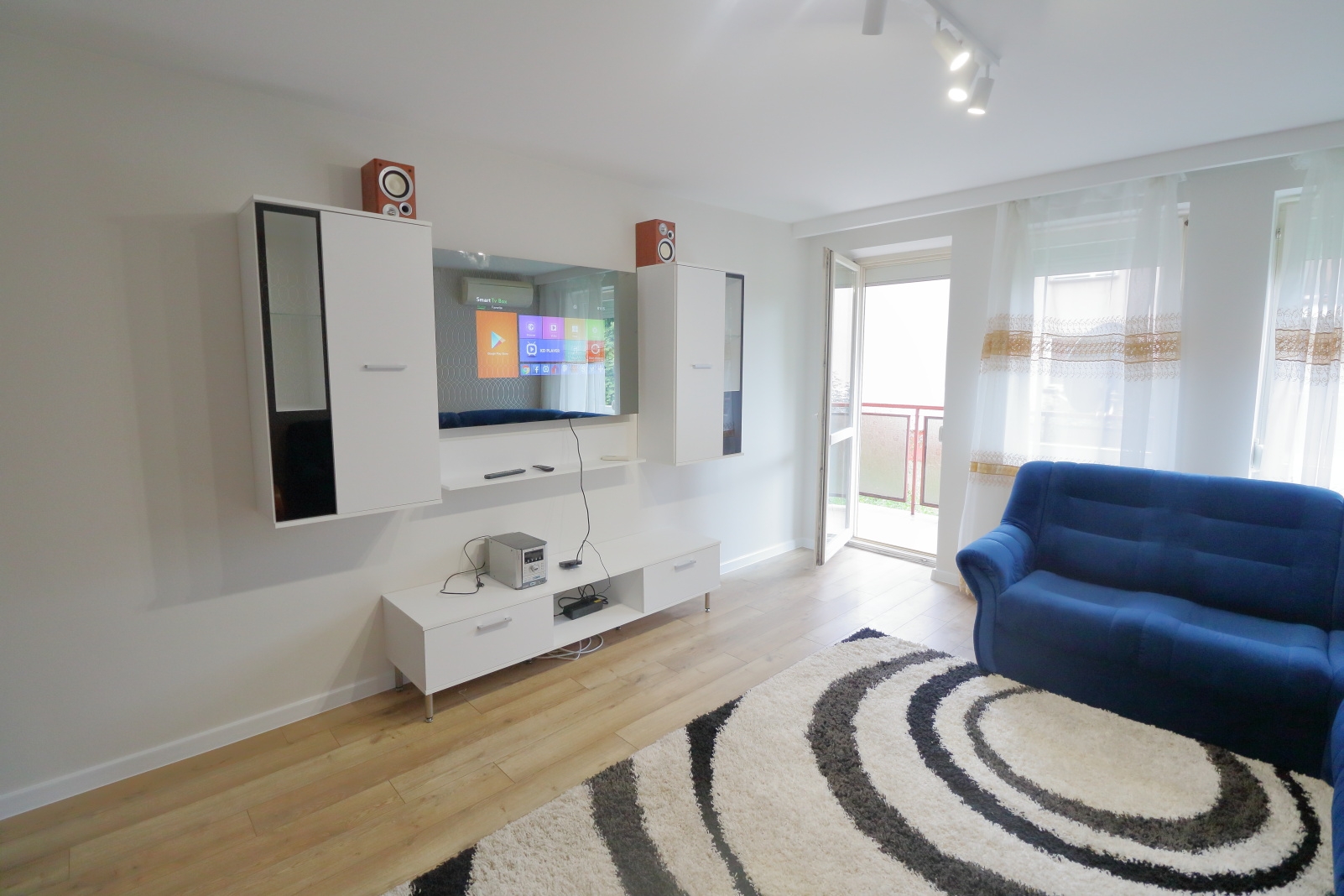 4) salon z dużym balkonem.