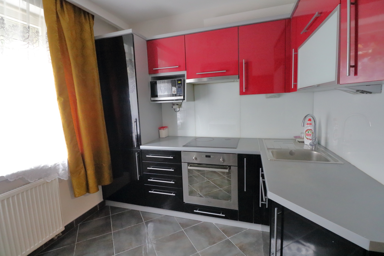 W mieszkaniu znajduje się osobna nowoczesna kuchnia z lakierowanymi frontami wraz pełnym z wyposażeniem tj. piekarnik, płyta indukcyjna, zmywarka, mikrofalówka oraz lodówka.